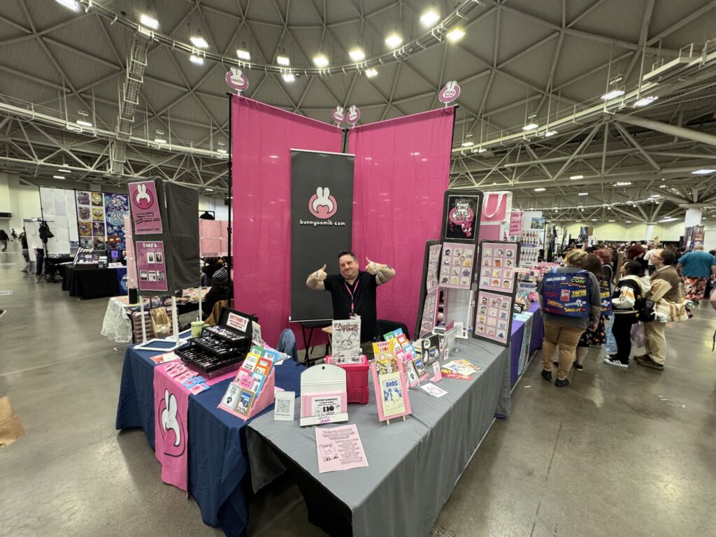 Bunnyvomit occasionally appears at comic festivals, zine fairs, and independent art events. These gatherings are a great chance to meet readers, trade comics with other artists, and share work with people who love underground publishing.