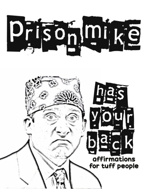 Prison Mike Has Your Back is a 16 page black and white zine full of affirmations for your daily life. Hand made with love and care ay Bunnyvomit studios.